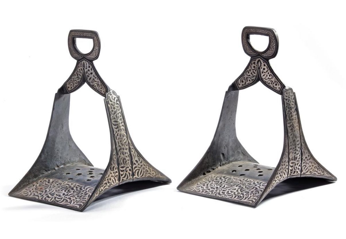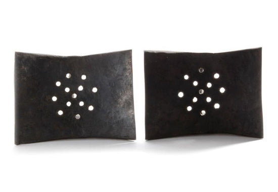 Set of 2, decorated with intricate silver inlay floral and geometric designs.
