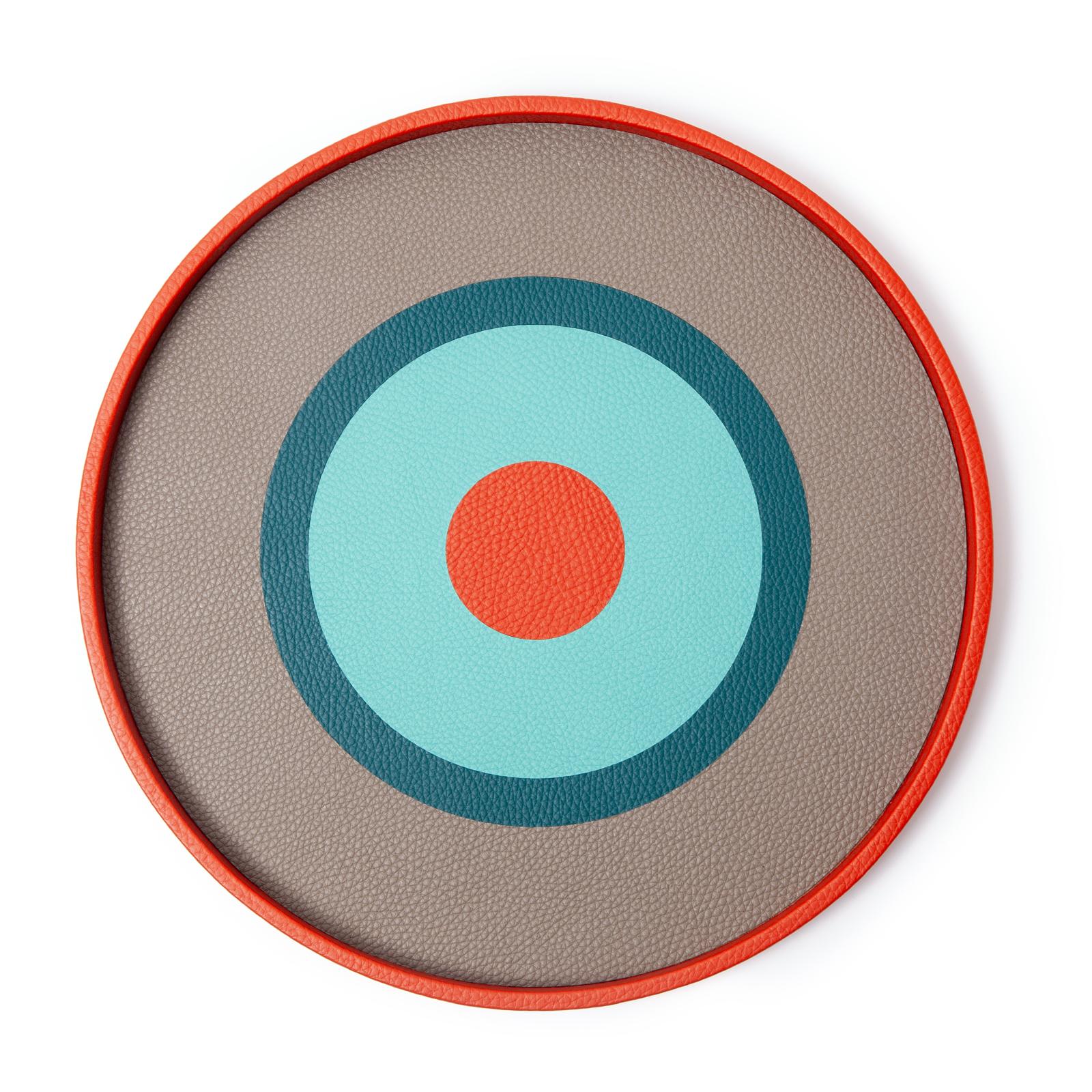 The "Apple of My Eye" Tray by Madame Malachite celebrates the power of circles, a symbol of unity, infinity, and the natural cycles of life. The circular eye motif on this tray acts as a talisman of protection, inviting positive energy into any space. Crafted with intricate leather marquetry, its vibrant color combinations are carefully curated and limited each year, making each piece a unique and collectible work of art.