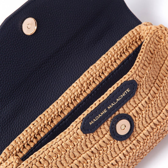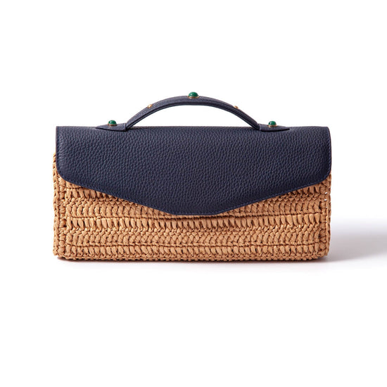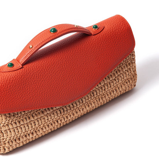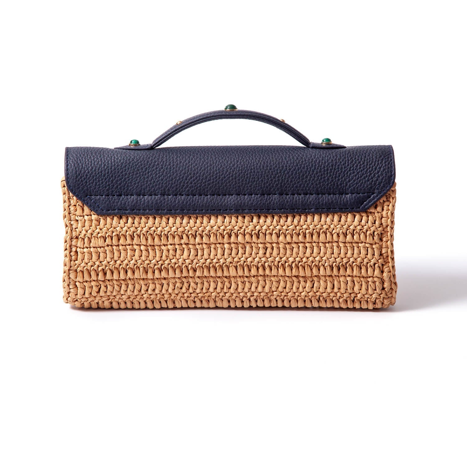 Handcrafted in natural raffia and floater leather, the handle is adorned with genuine malachite stones, transforming this bag into a talisman of elegance and intention.