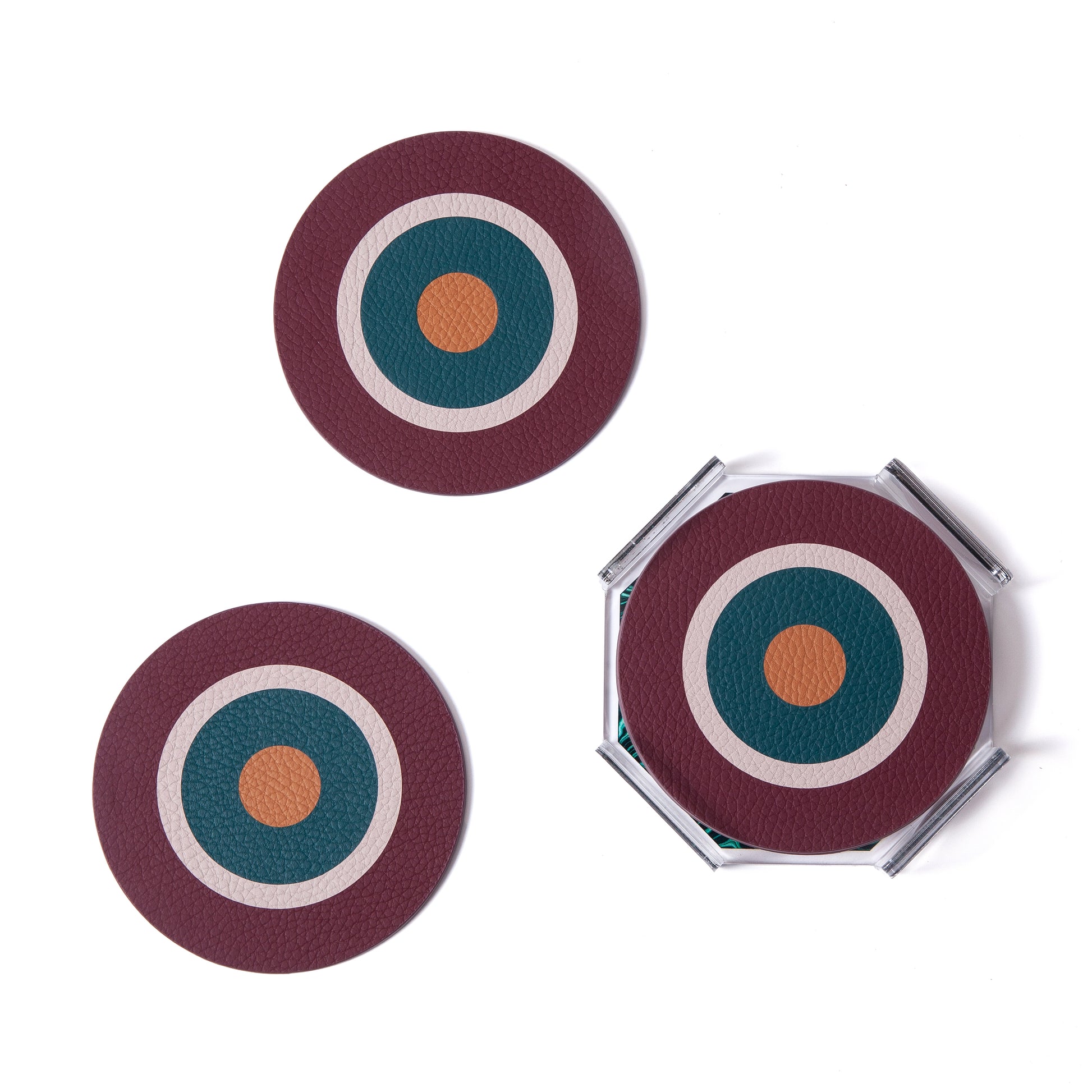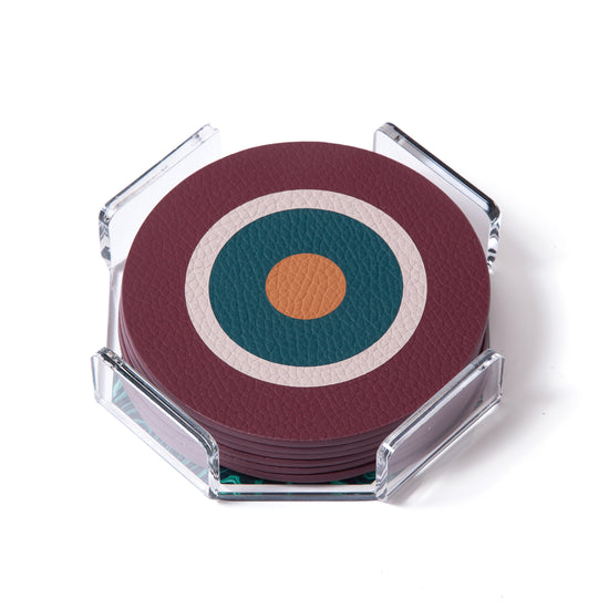 Stella Coasters Set of 6 Burgundy/Sand/Teal/Caramel