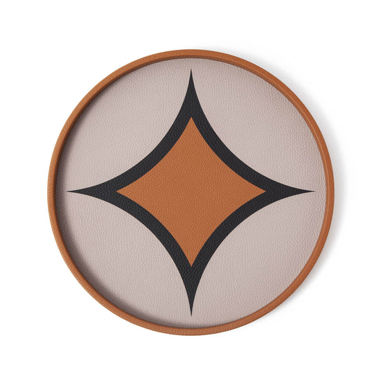 A bold and colorful geometric leather tray, perfect for coffee tables or curated displays.