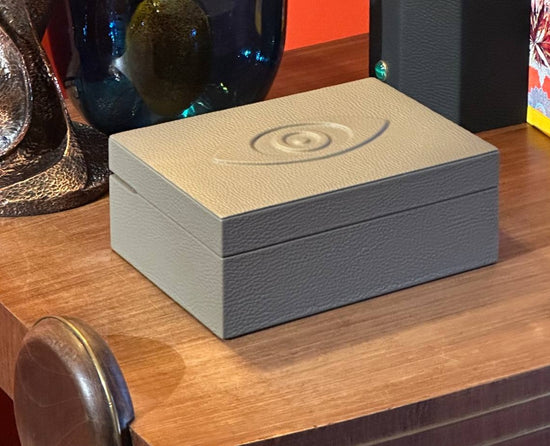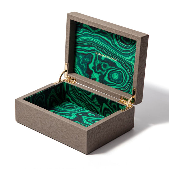 Store all your curiosities in hand crafted leather box with our signature malachite lining.