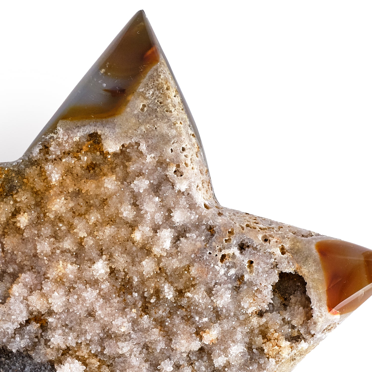 Hand-carved from agate and adorned with natural crystal formations, the Unique Crystal Star embodies the meeting of strength and serenity. A sculptural piece that speaks to refined, organic luxury.